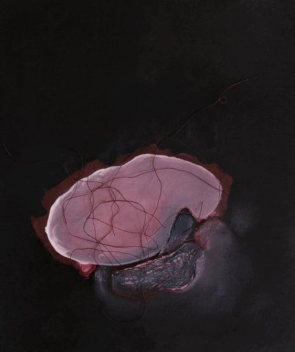 Terugkerende motieven in mijn werk zijn innerlijke werelden en landschappen, mensfiguren, kwetsbaarheid en schuilplekken.